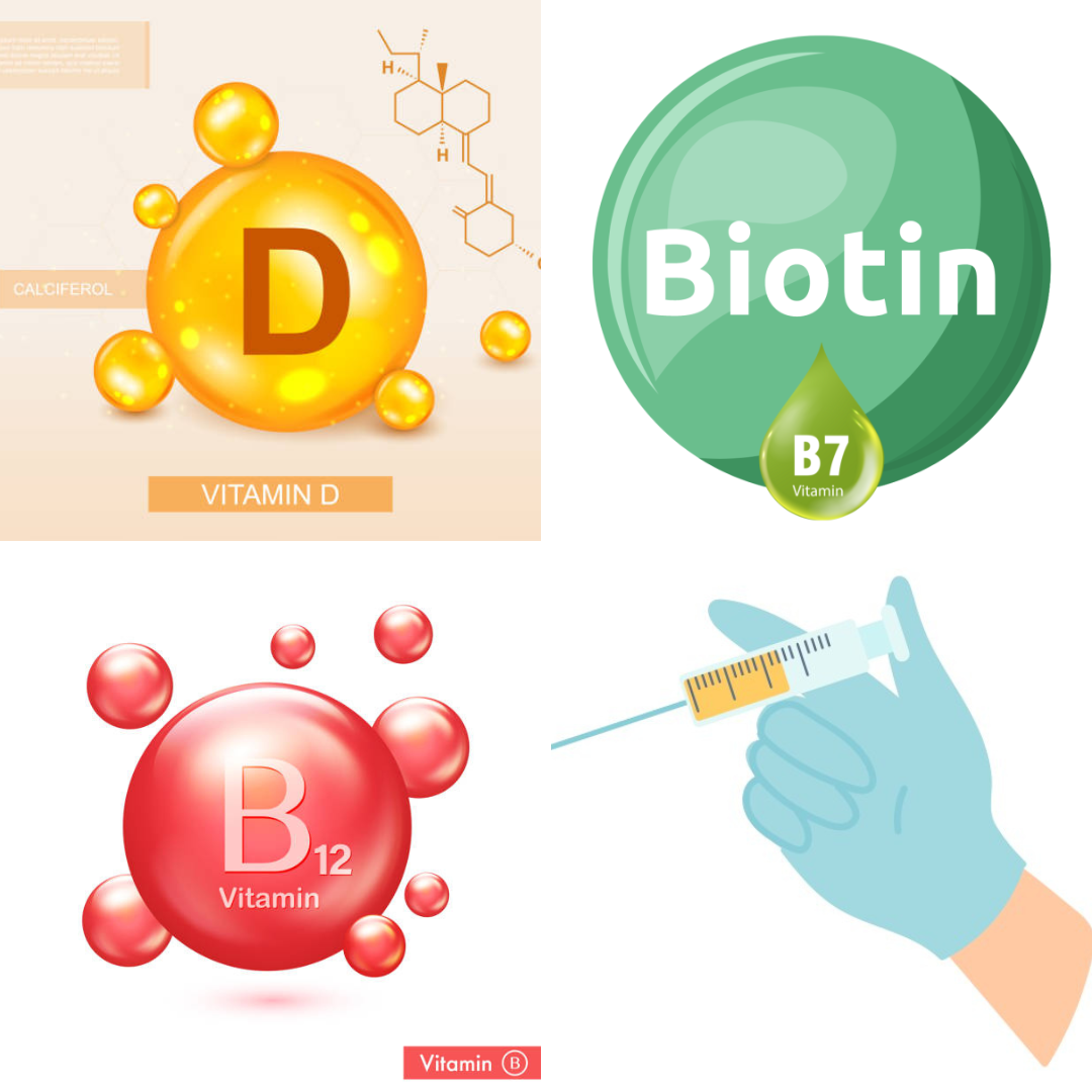 Some of these injections include: Vitamin B-12, Vitamin D-3, and Biotin